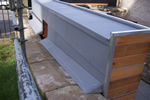 Curved standing seam roofing. Box gutters and curved bullnose fascia.